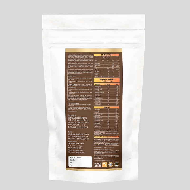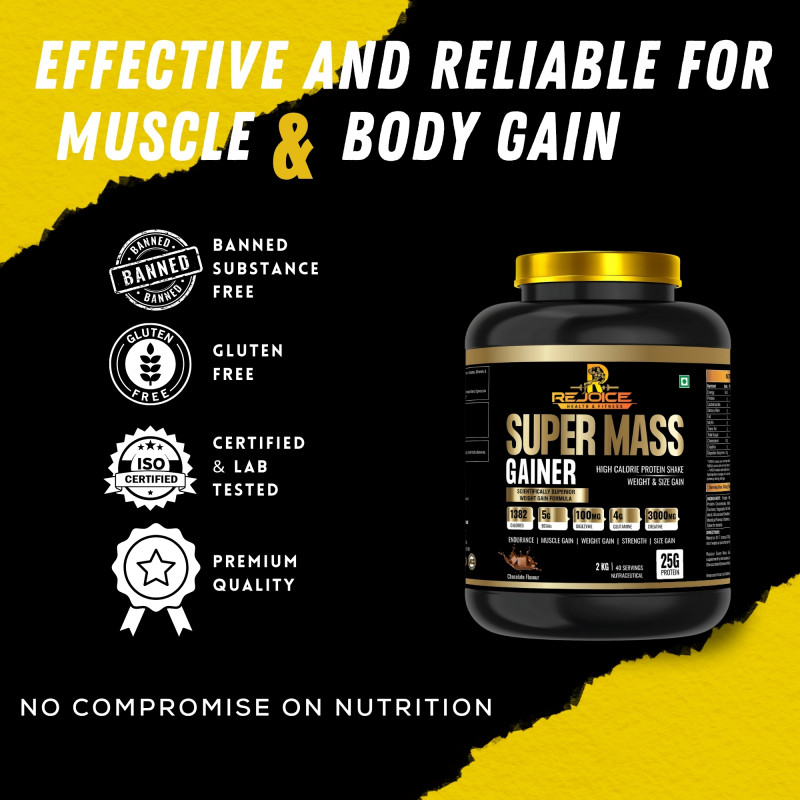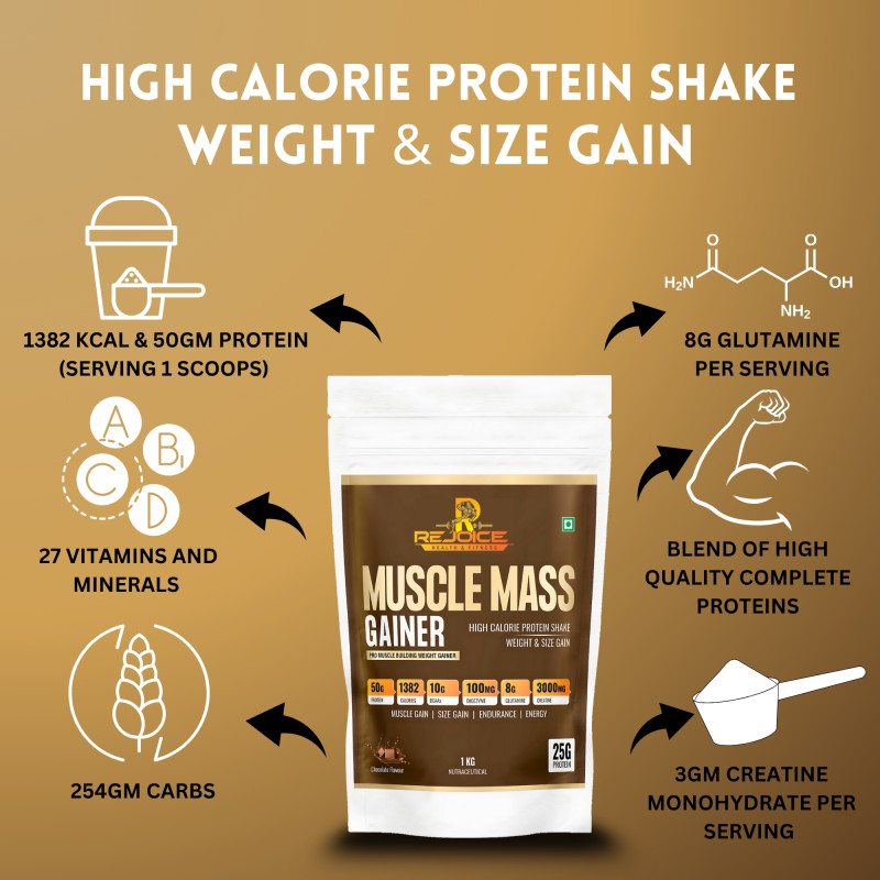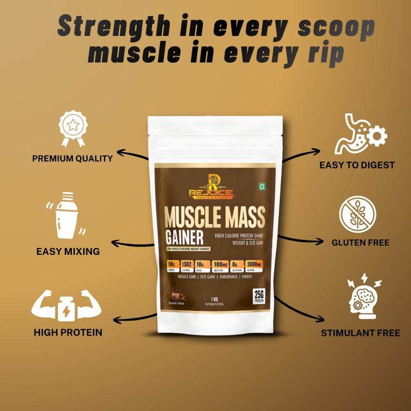 Rejoice Muscle Mass Gainer is designed for individuals who want to increase muscle mass, strength and body weight.