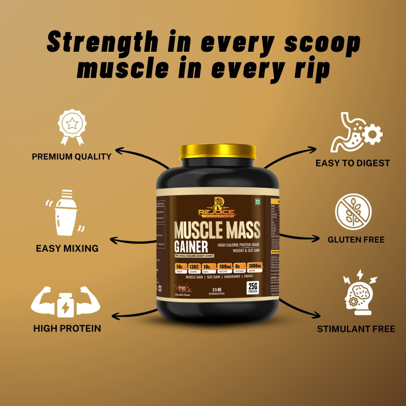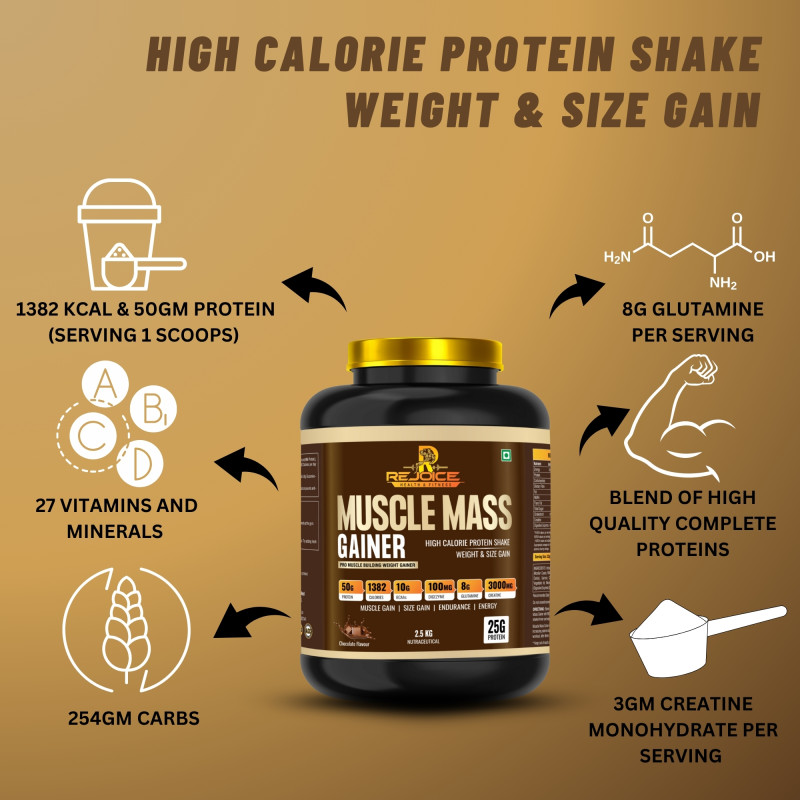 Rejoice Muscle Mass Gainer is a powerful high-calorie nutrition formula designed for individuals who want to build muscle mass and increase body weight.
